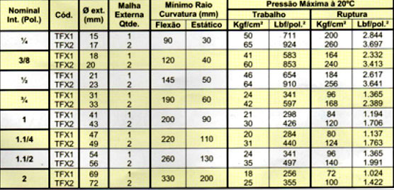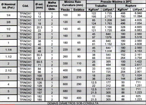 Fabricados com corrugação anular ou helicoidal, nos modelos de passo normal ou fechado, dependendo do raio de curvatura e flexibilidade necessário à instalação. Fornecidos com um ou mais trançados externos, conforme pressão de trabalho especificada. Podem ser fornecidos com ou sem terminais.