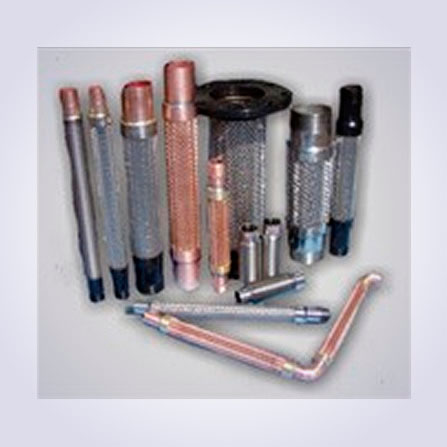 Tubo Metálico Flexível Sanfonizado, fabricado em liga especial de Cobre ASTM B-135 e Revestido Externamente com trançado de fios do mesmo material. Podem ser utilizados a temperaturas de -60ºC até +250ºC